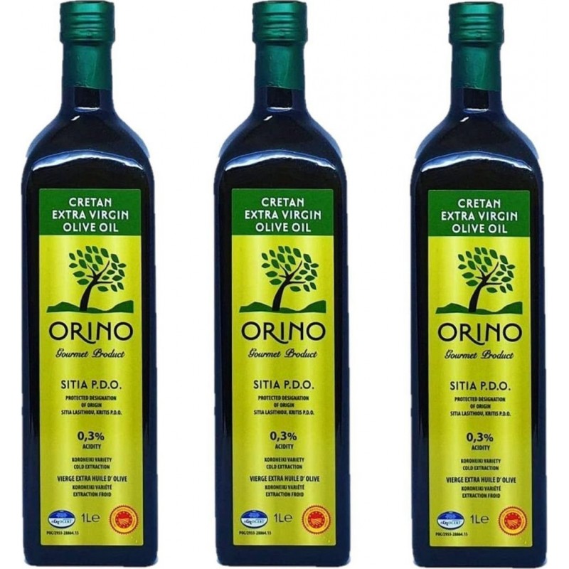 Aop Huile D'olive Bio Grecque Extra Vierge Orino les 3 bouteilles de 1.0L